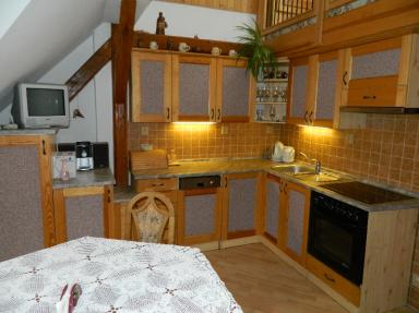 Podkrovní apartmán – vlastní koupelna, TV, nadstandartně vybavená kuchyň, prostorný apartmán až pro 8 osob.