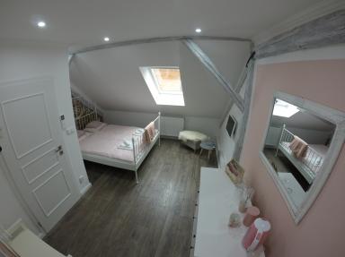 Pokoj s manželskou postelí zařízený do starorůžova tak, abyste se v něm cítili jako v pohádce. Je sice nejmenší z našich pokojů, avšak vystupující z řady svou útulností.